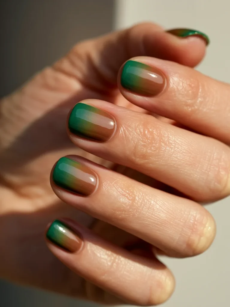 This Treaty Oak Revival nail design takes inspiration from nature with a sophisticated earthy gradient. The smooth transition from deep green to warm brown mimics the rich colors of the earth, subtly evoking the colors of the iconic Treaty Oak. The gradient effect provides a clean yet bold statement, making it a standout look.