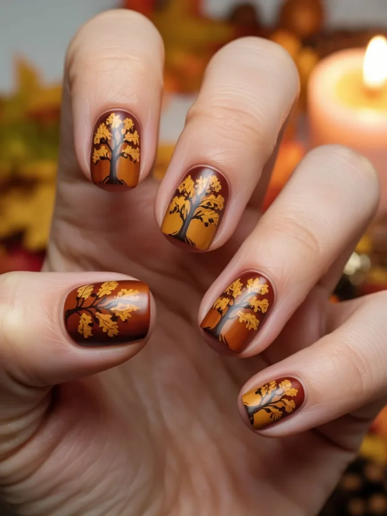 15. Treaty Oak Revival Autumn Trees Nail Art