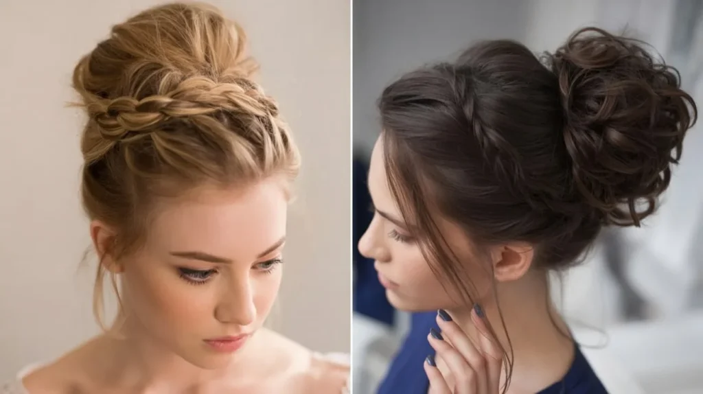 - Heart-Shaped Face: Opt for styles that balance the forehead, such as side-swept buns or twisted updos with volume at the bottom.