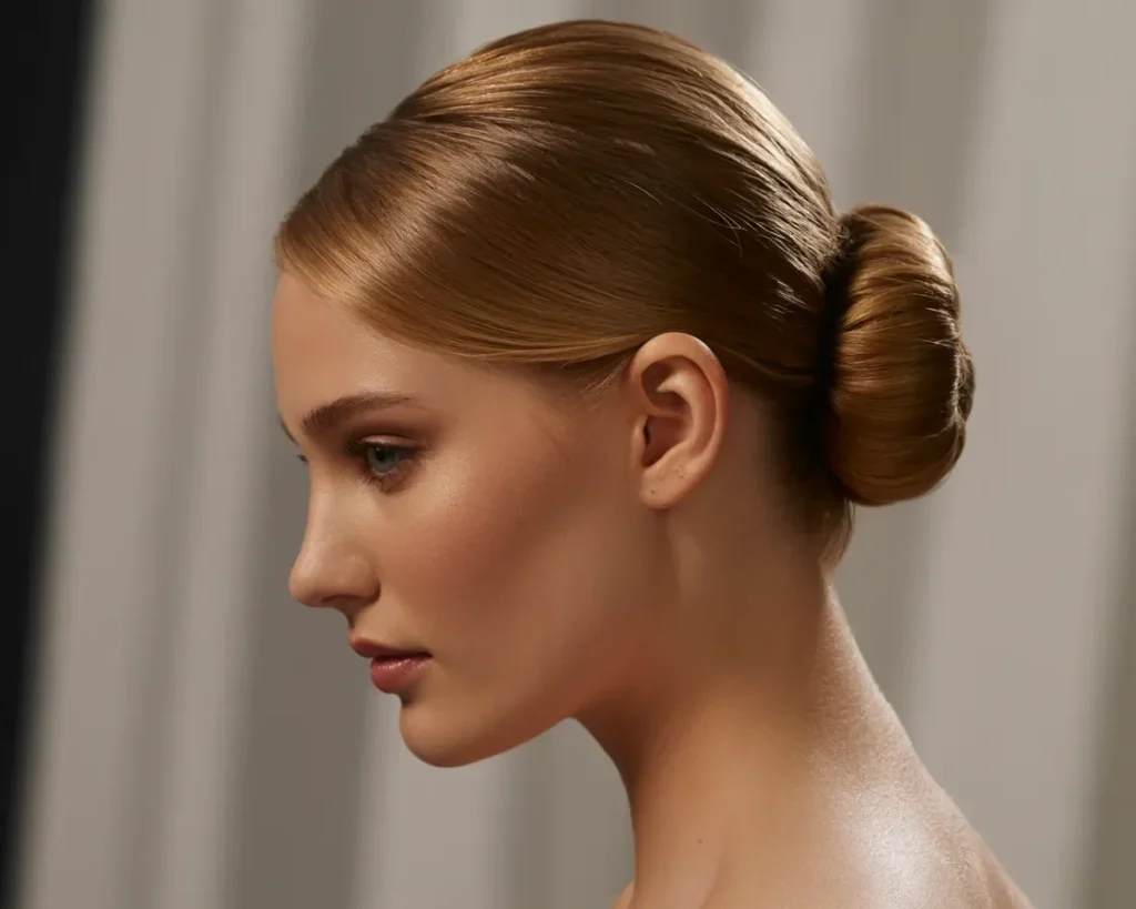 A sleek low bun is an elegant and timeless hairstyle that works beautifully for vacation dinners, events, or even a relaxed day out. This polished look features smooth, neatly pulled-back hair with no flyaways, creating a sophisticated vibe. The hair is gently gathered at the nape of the neck and twisted into a bun, offering both comfort and style.