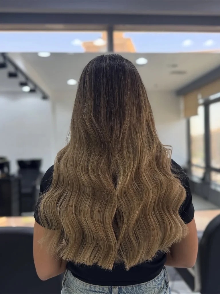 Loose, beachy waves like this one are easy to achieve with a bit of salt spray or a curling iron, and they help frame the face while maintaining a natural, untamed feel. The subtle ombre effect in the hair adds dimension, making it look like it’s been lightly kissed by the sun.