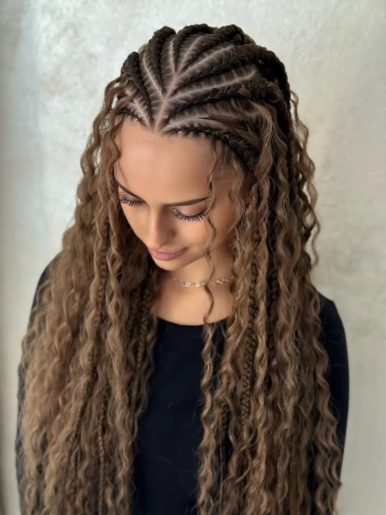 For women who want to embrace texture and artistry this winter, braided waves offer a stunning mix of detail and volume. The tightly woven braids along the scalp transition into soft, wavy lengths, creating a look that feels both bold and feminine.