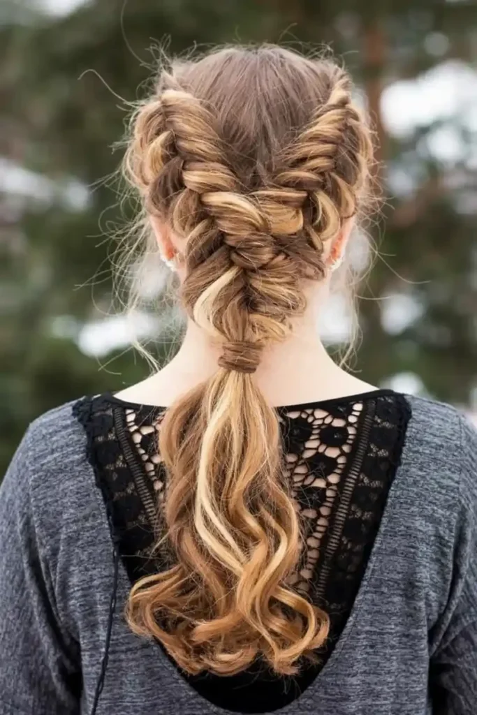 For women who love a mix of elegance and creativity, the twisted winter fishtail braid brings a fairytale touch to cold-weather styling. The intricate weaving adds texture and depth, while the soft curls at the end keep it feminine and relaxed.