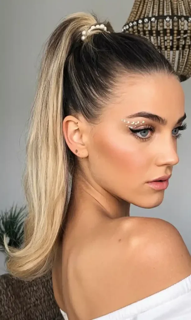 Styling Tip: Apply a smoothing serum before brushing your hair into a high ponytail for that glossy, frizz-free finish. Wrap a small section of hair around the elastic for a seamless look and mist with a strong-hold spray to maintain shape. For extra volume, gently tease the base of the ponytail, giving it that winter-ready bounce and lift.