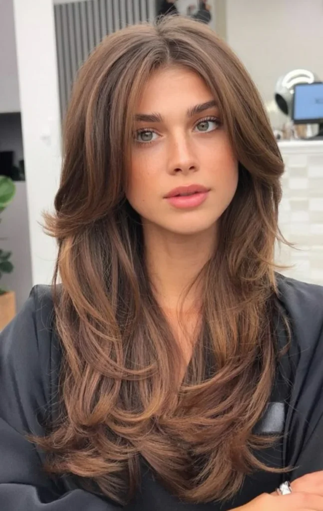 For women who love soft, effortless movement in their hair, feathered winter layers bring timeless beauty with a touch of modern grace. The cascading layers add body and bounce, framing the face with lightness and dimension.