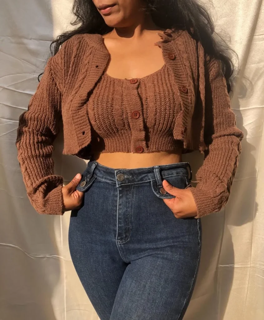 13. Cozy Knit Crop Top with Cardigan