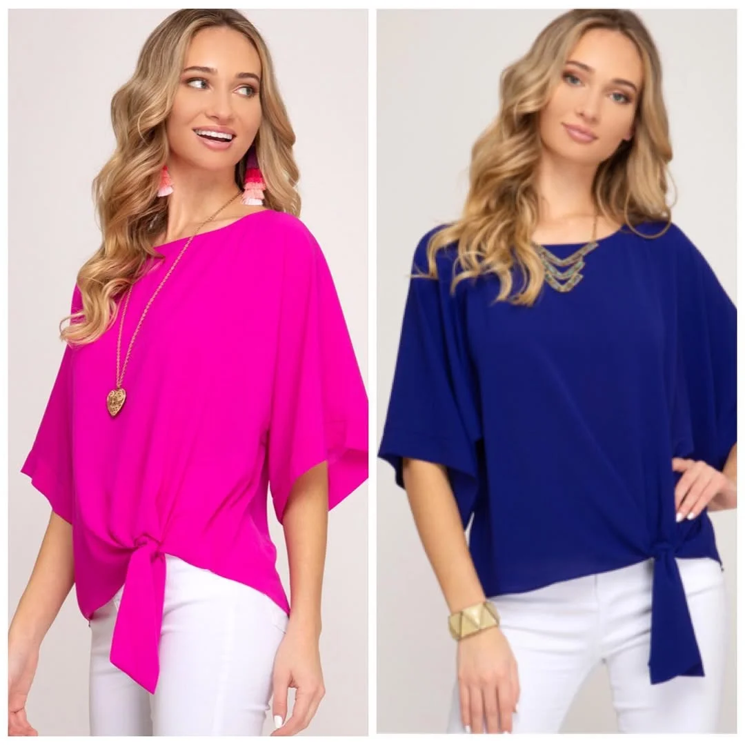 These knotted tops add a playful twist to casual fashion. The bold magenta and deep blue hues provide a striking contrast, while the soft, flowy fabric offers comfort throughout the day.
