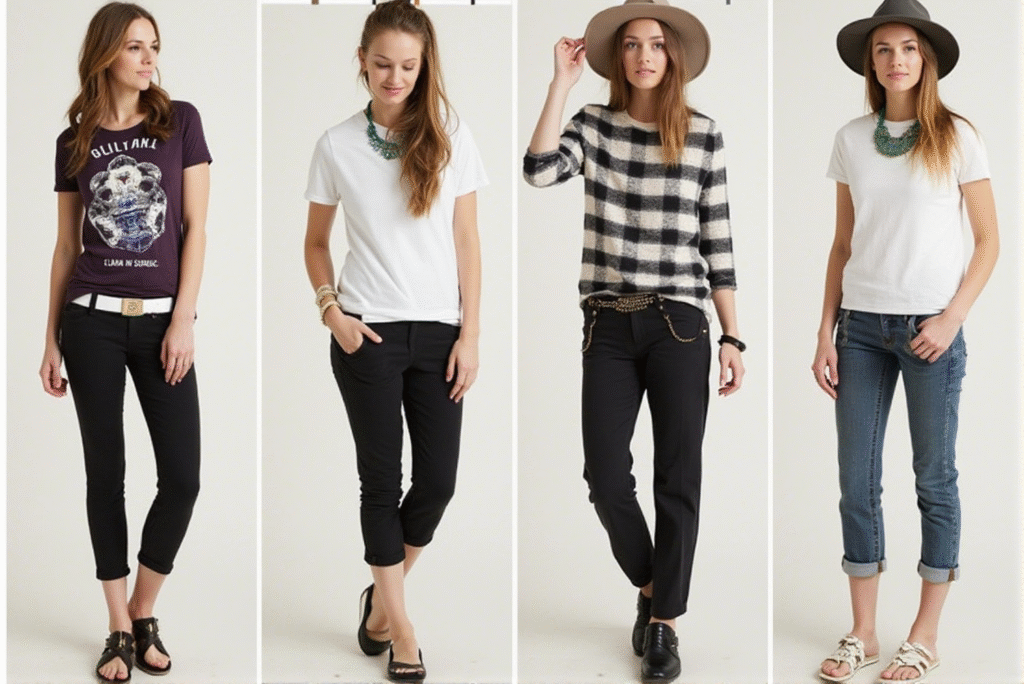 Even a basic yoga pants outfit can look stylish with accessories. Add a statement belt, layered necklaces, or a stylish hat to transform simple pants and a tee into a fashion-forward outfit.