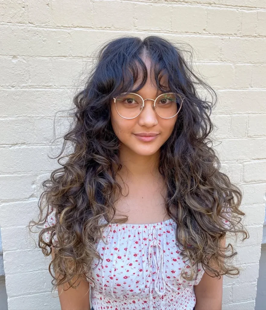 The result is youthful, full of character, and beautifully textured ,a hairstyle that celebrates the natural charm of long curly hair in the most flattering way.