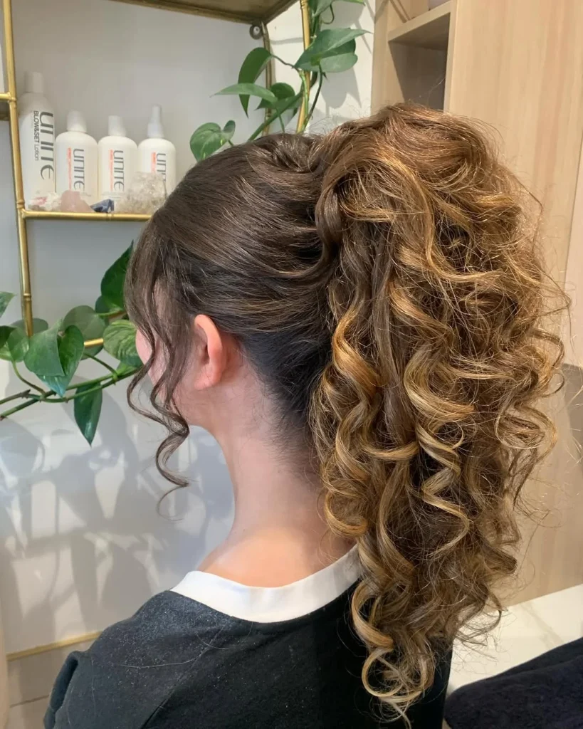 10.Voluminous Curly Ponytail with Soft Tendrils