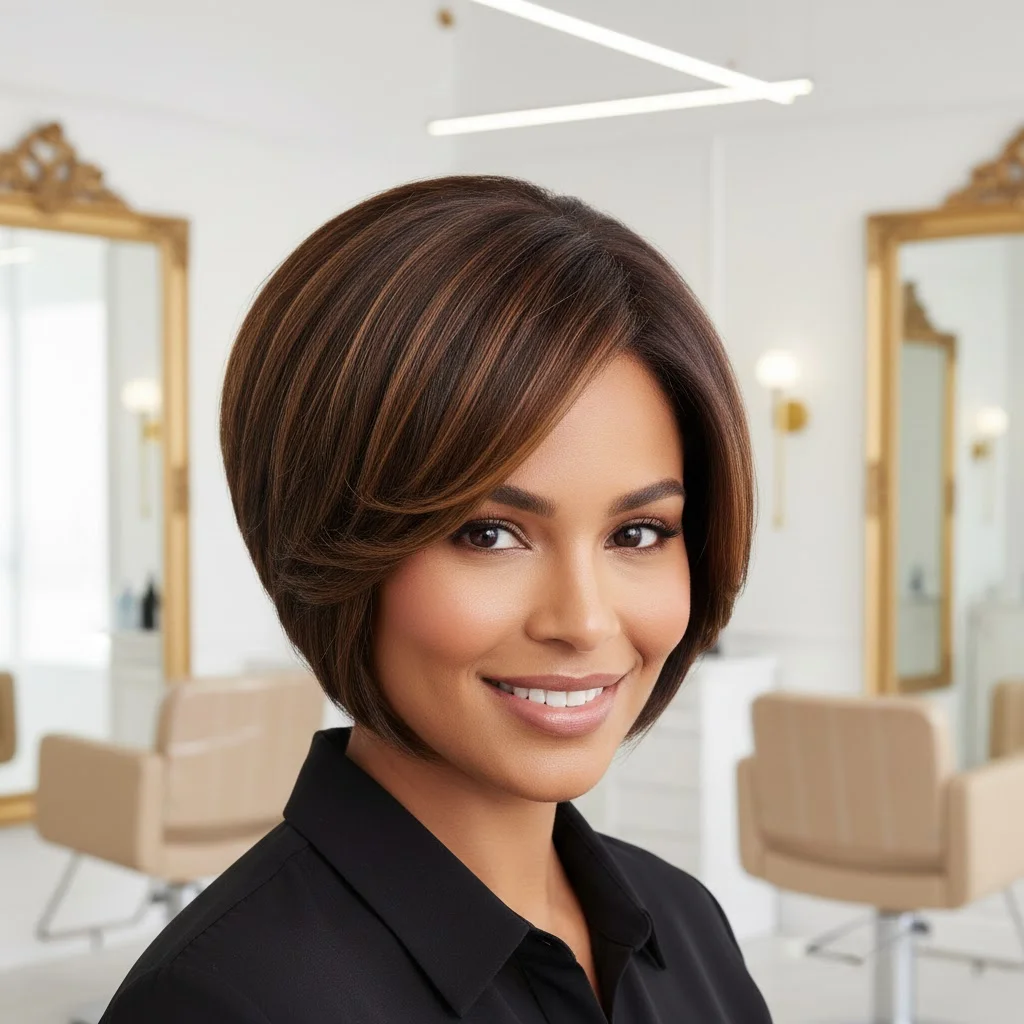 If you have a short bob, incorporate light brown highlights into your hair to add dimension and movement. The highlights will create depth in your hair, making it appear fuller and thicker. This short hairstyle is chic and modern, ideal for those who want a fuss-free yet stylish look.