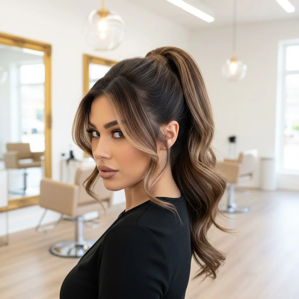 8. High Ponytail with Highlights