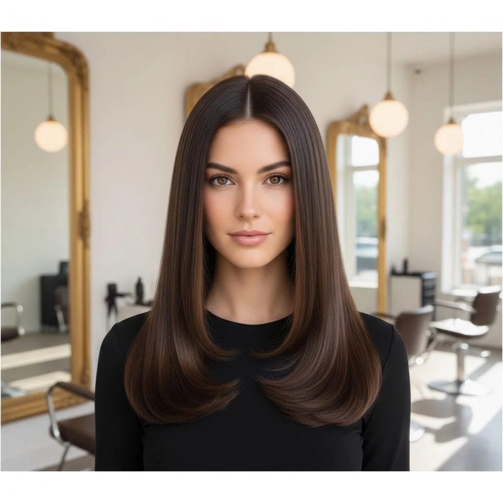 For a more polished, sophisticated look, try wearing your dark brown hair sleek and straight. The contrast between the dark brown base and the lighter brown highlights will stand out beautifully, especially with a high-shine finish. It’s perfect for formal events or professional settings.