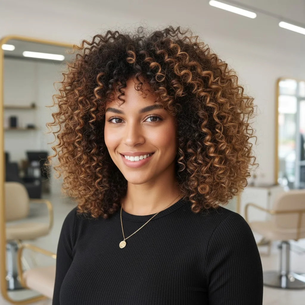 4. Curly Hair with Peekaboo Highlights