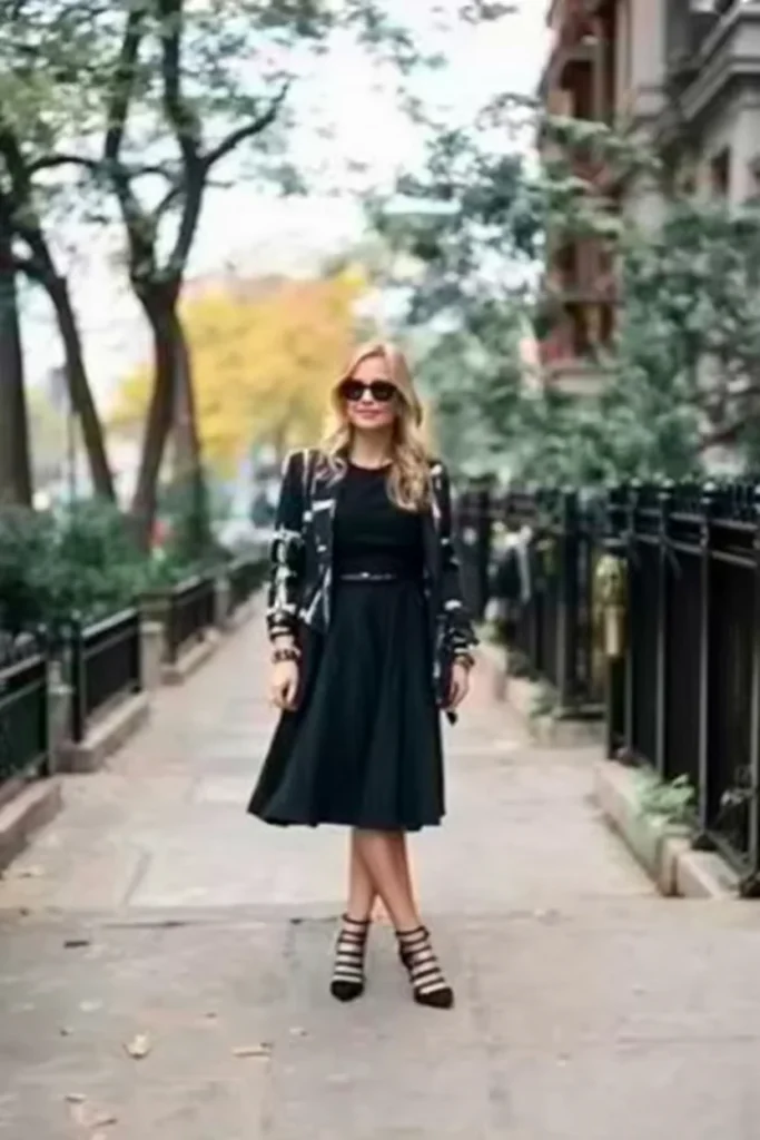 11. Chic and Timeless: Black Dress and Printed Blazer
