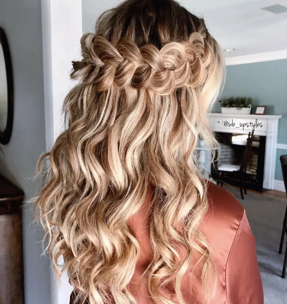 14. Half-Up Braided Crown Bridesmaid Hairstyle