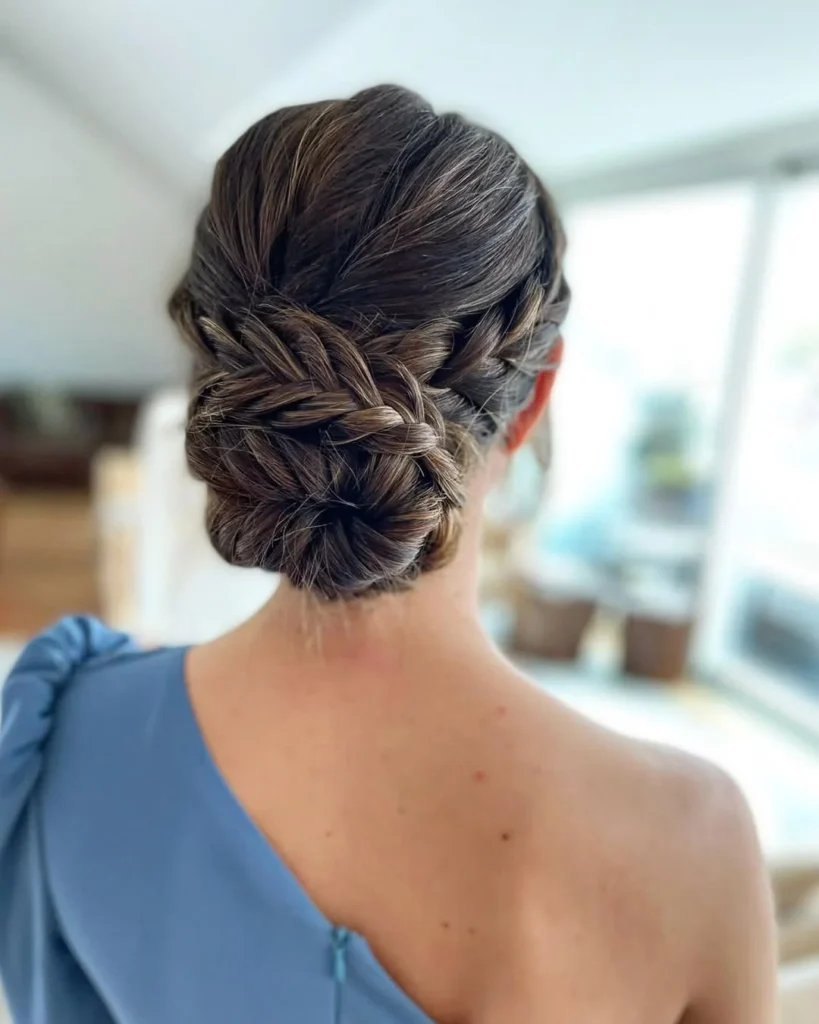 9. Fishtail Braided Low Bun Bridesmaid Hairstyle