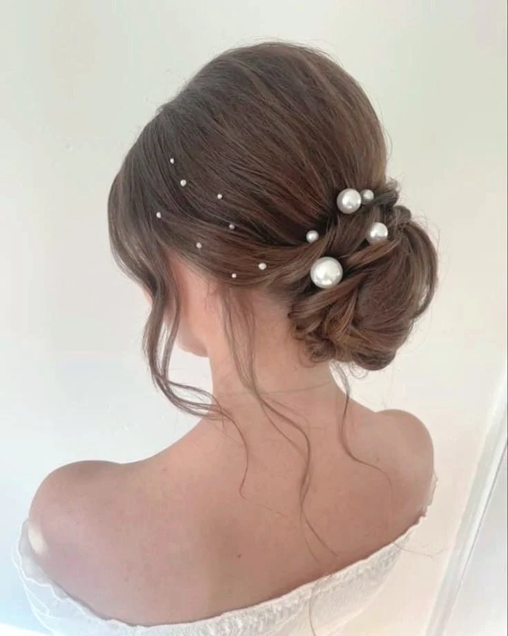 13. Pearl-Studded Low Bun Bridesmaid Hairstyle