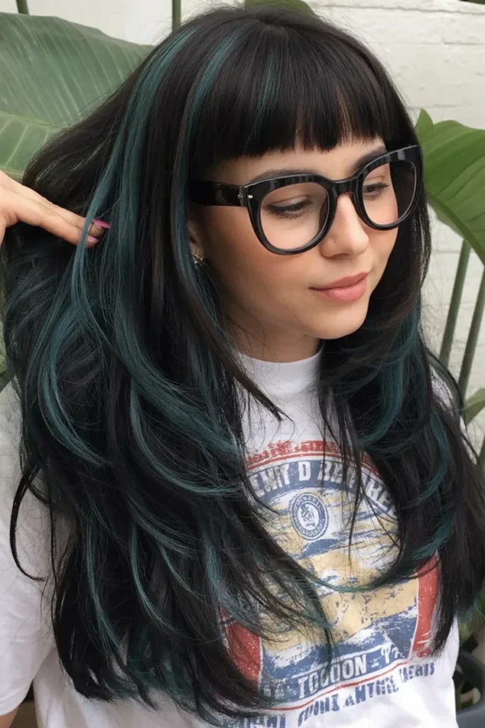 This layered haircut for long hair brings depth and flow while keeping the length strong and noticeable. Dark strands are softened with cool toned color accents that add interest without overpowering the style.