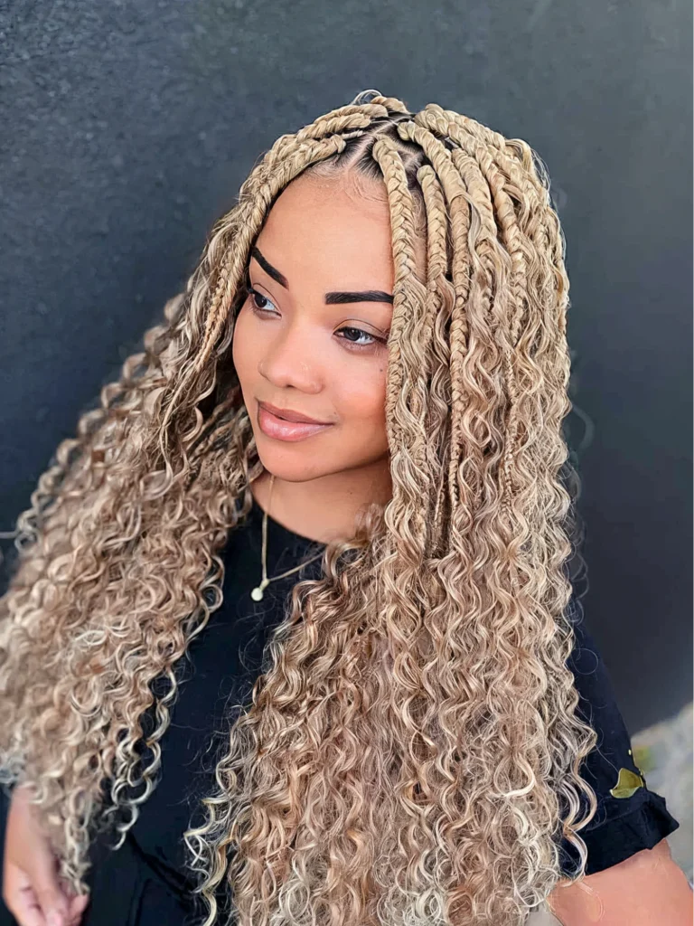 11.Blonde Box Braids with Curly Ends
