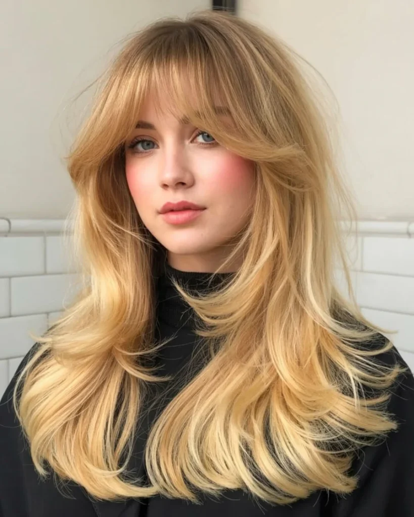 Warm honey tones highlight every curve of the layers, giving the hairstyle a natural glow. This look works well for thick hair that needs shape without losing fullness. Styling becomes simple, as the layers naturally fall into place and add life with every turn. This cut stays flattering for everyday wear and looks polished with minimal effort.
