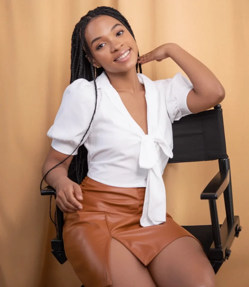 This outfit pairs a warm brown mini skirt with a soft white blouse for a clean, stylish look that works for casual days or relaxed outings. The skirt brings a smooth leather texture that adds confidence and shape, while the side slit gives the whole outfit a gentle, modern lift. The white top softens the look with light, airy sleeves and a loose front tie that drapes beautifully.