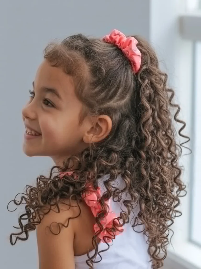 For curly-haired kids, a curly ponytail is a perfect style to keep the curls bouncy and defined. The curly texture adds volume and personality to the hairstyle. To keep those curls intact, use a curl-enhancing mousse or gel before pulling the hair back into a ponytail. A curly ponytail looks especially fun when paired with a colorful scrunchie or ribbon that complements the natural texture.