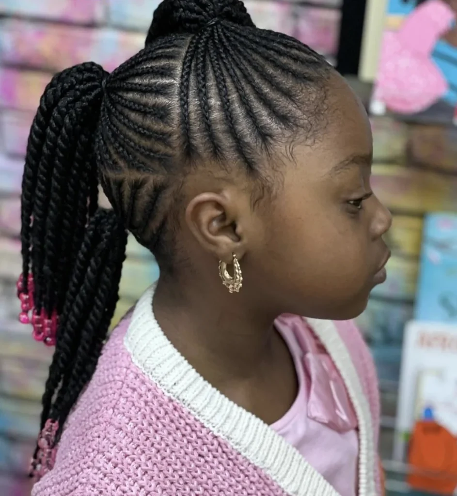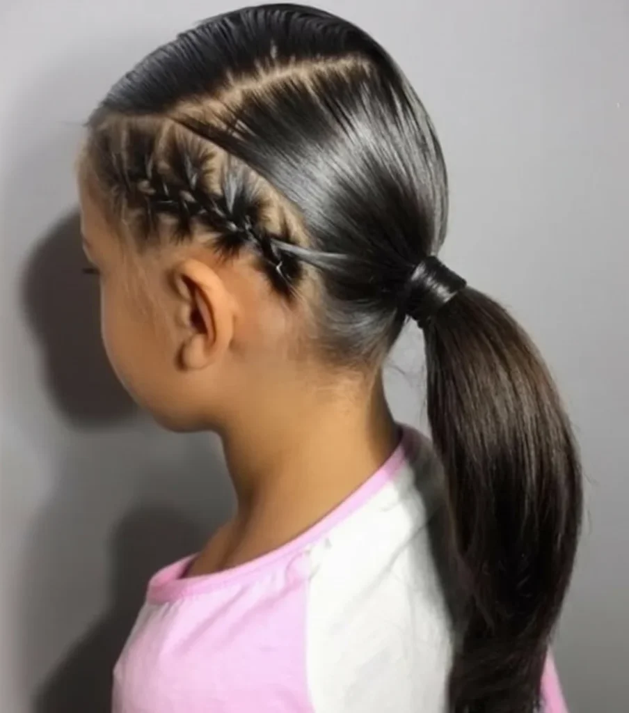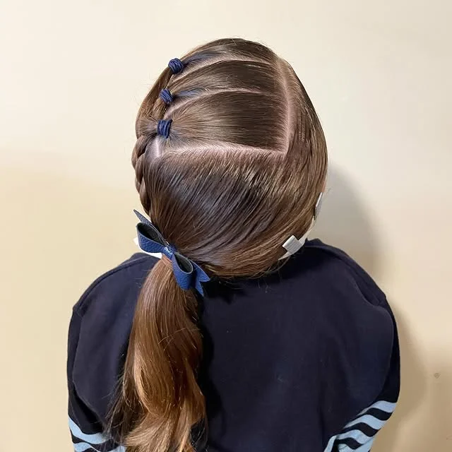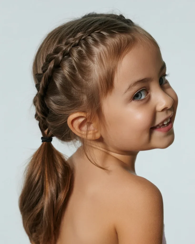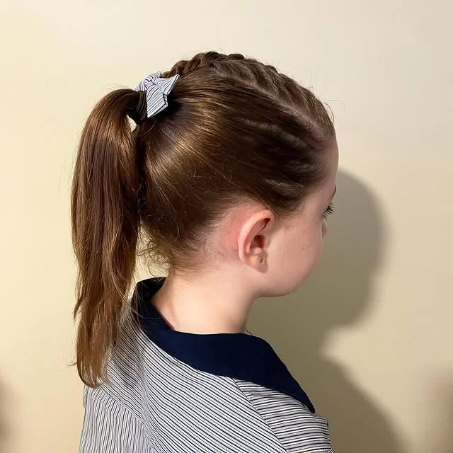 For a more intricate and elegant style, try the French braided ponytail. Start by creating a French braid at the crown of the head, and then finish the rest of the hair into a ponytail. This look combines the neatness of braids with the relaxed vibe of a ponytail. It’s perfect for weddings, parties, or any event where you want your child’s hairstyle to stand out.
