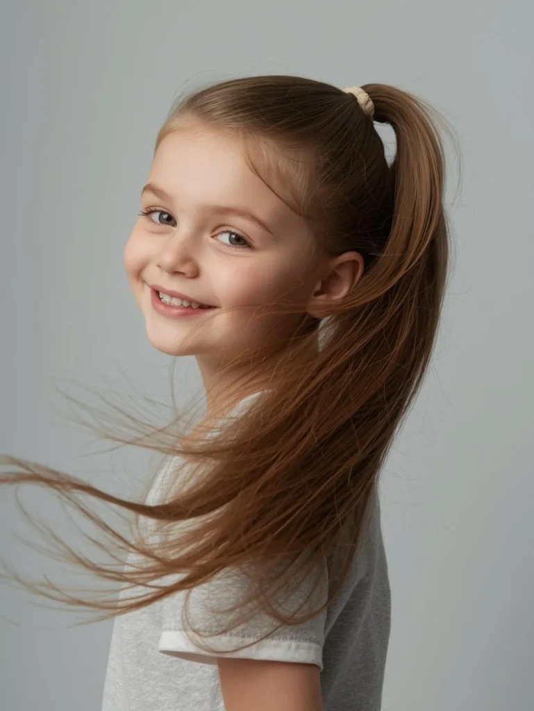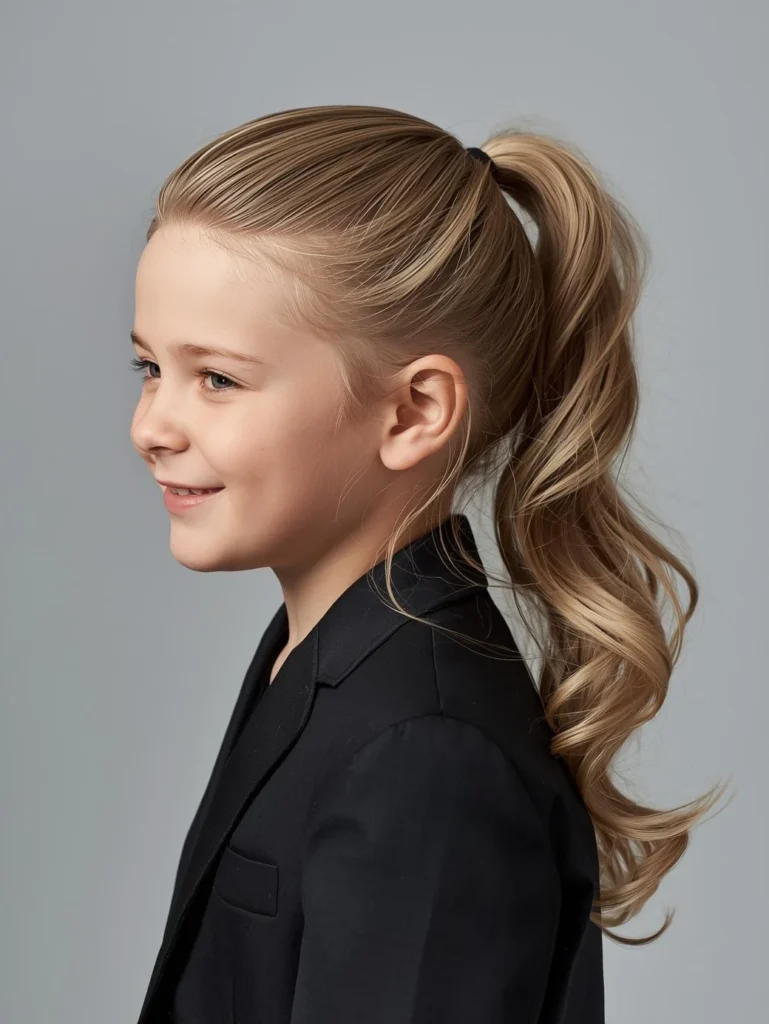 A sleek ponytail offers a polished, sophisticated vibe. To achieve this look, use a flat iron to smooth out the hair before gathering it into a ponytail. Use a bit of gel or smoothing serum to keep any stray hairs in place, giving the ponytail a sleek, glossy finish. This style is perfect for special events or occasions where you want your child to look a little more dressed up.