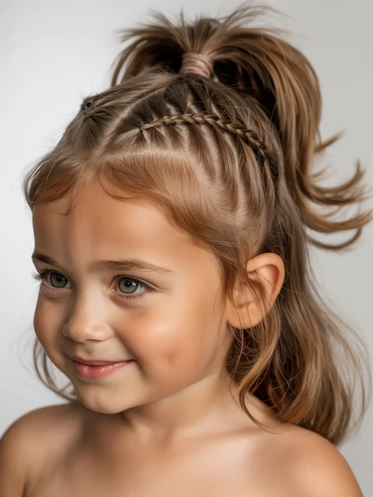 A braided ponytail takes the traditional ponytail and elevates it with an added twist. You can braid the entire ponytail, or simply add a small braid to the side for a fun and interesting detail. French braids or fishtail braids work well for this look. This style is perfect for occasions where you want your little one’s hair to stay neat and organized but still want to add a fun, stylish detail.
