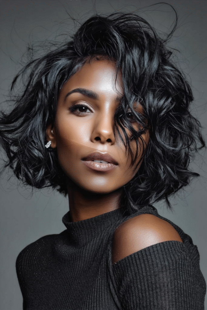 A voluminous layered bob like this brings movement, shape, and elegance together, making it a standout choice in short hairstyles for Black women. Soft layers frame the face and create a gentle curl at the ends, giving the style a glamorous yet natural flow.