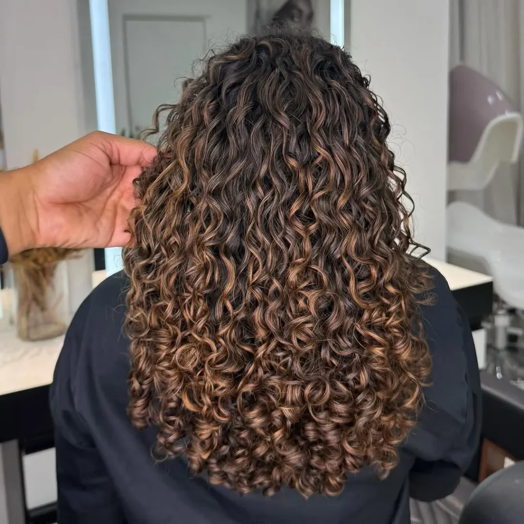 15. Bouncy Curly Hairstyle with Warm Tones