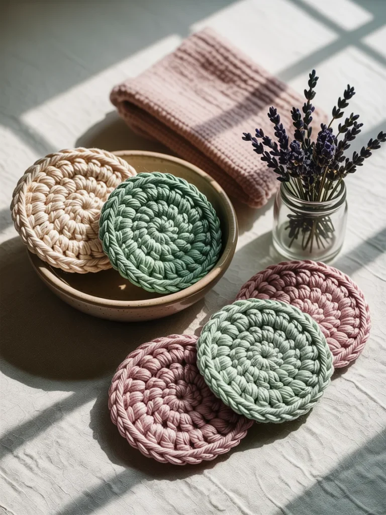 Soft crochet face scrubbies offer a gentle and reusable option for daily skincare routines. Handcrafted with textured stitches, these round pads feel soothing against the skin while helping remove makeup or cleanse the face.