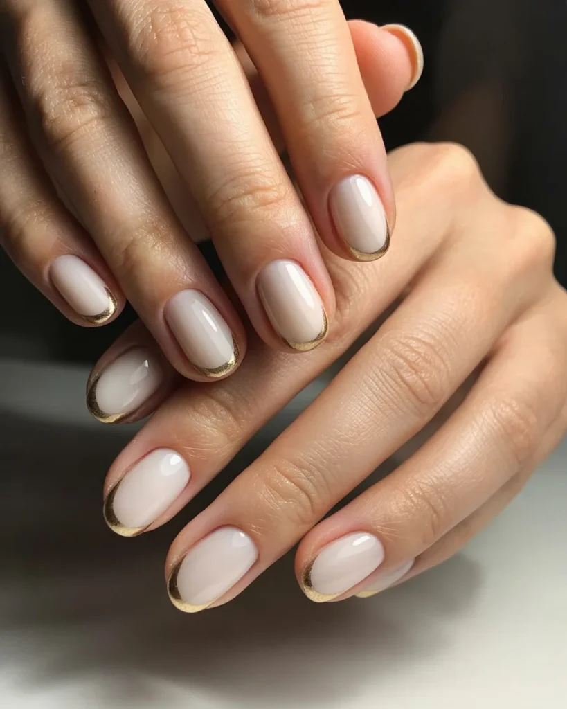 The look is understated but elegant. You get a modern twist on the French manicure. The warm gold complements the neutral base, avoiding any harsh contrast. This design works beautifully on short, rounded nails or longer almond shapes. It is a sophisticated choice that pairs well with both gold and silver jewelry.
