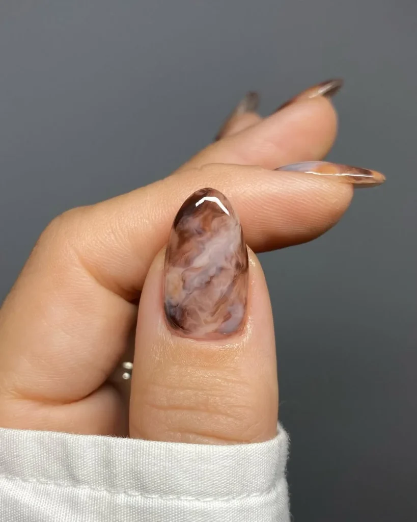 8. Soft Coffee Marble Nails