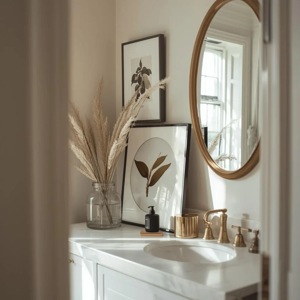 Bathroom decor doesn’t have to be just about fixtures and furniture. Personalize your bathroom by adding custom art pieces that reflect your personality. Whether it’s a framed botanical print, a beautiful mirror, or abstract art, incorporating art into your bathroom adds a unique touch.