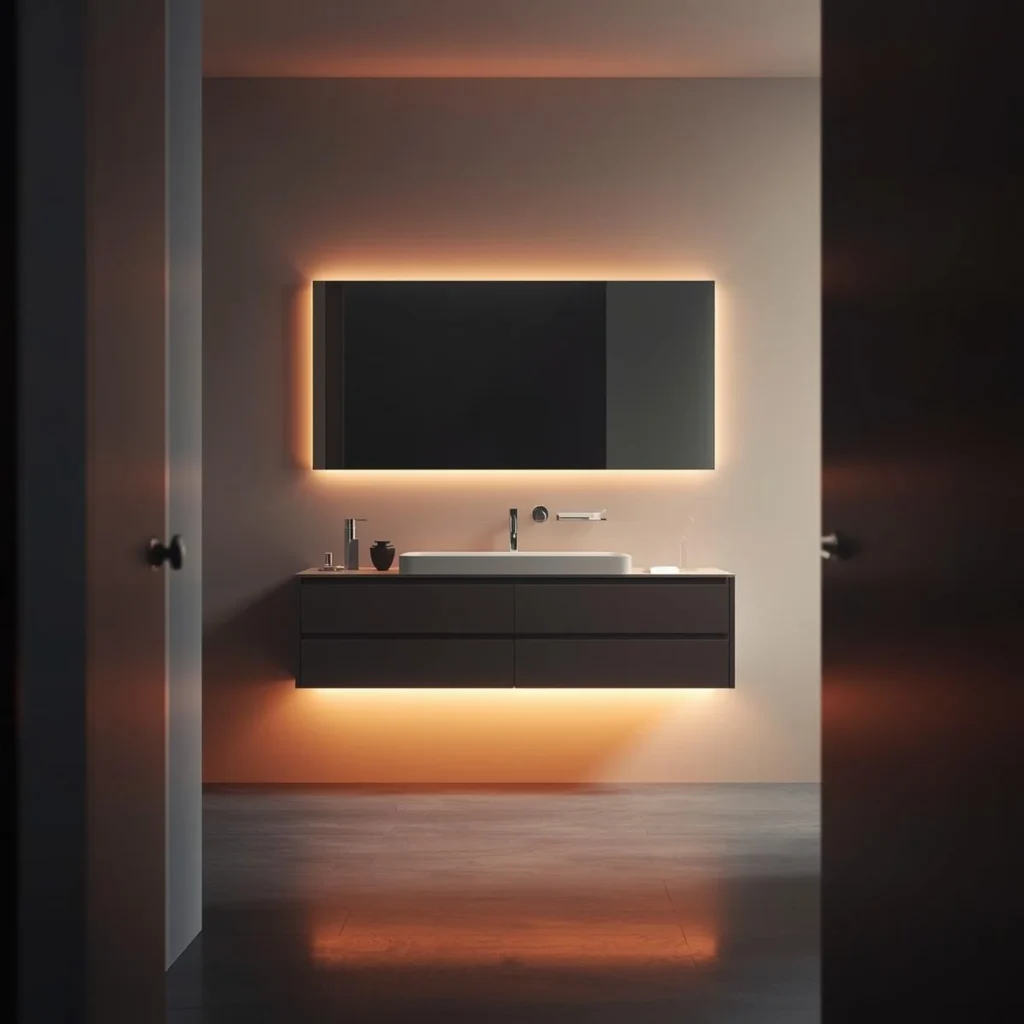 For a touch of drama, incorporate dimmable lighting options to adjust the mood depending on whether you’re getting ready for the day or unwinding in a bubble bath.