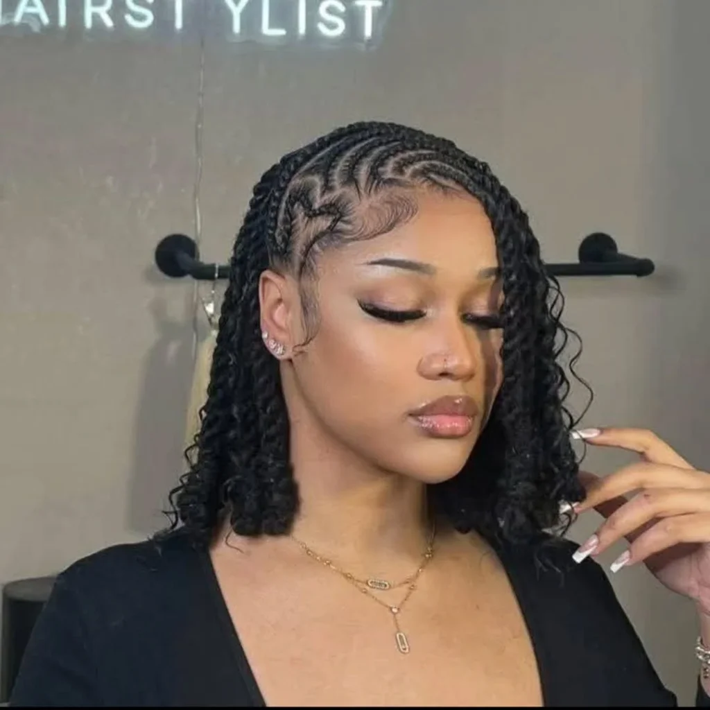The natural curls at the ends of the braids add softness and movement, contrasting beautifully with the neatness of the braids. This hairstyle is perfect for those looking to embrace both structure and flow in their look.