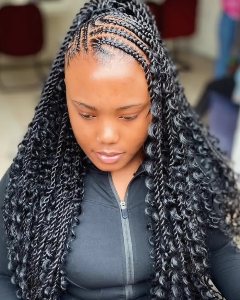 The combination of precision in the braids and the curly finish makes this style both chic and dynamic. It’s a fun way to showcase creativity while maintaining a polished look.