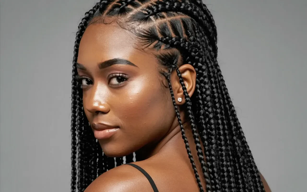 With the addition of simple accessories and a minimal outfit, this style brings attention to the braids’ intricate design and smooth finish. It’s the perfect blend of trendy and sophisticated.