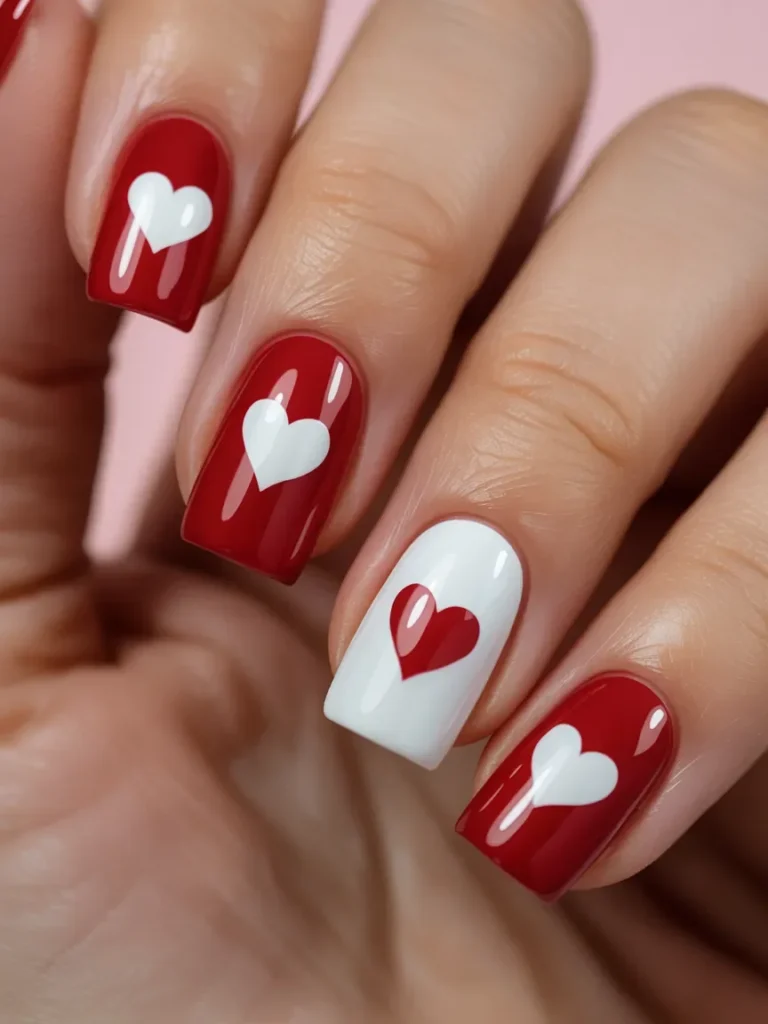 1. Red & White Heart Nail Design