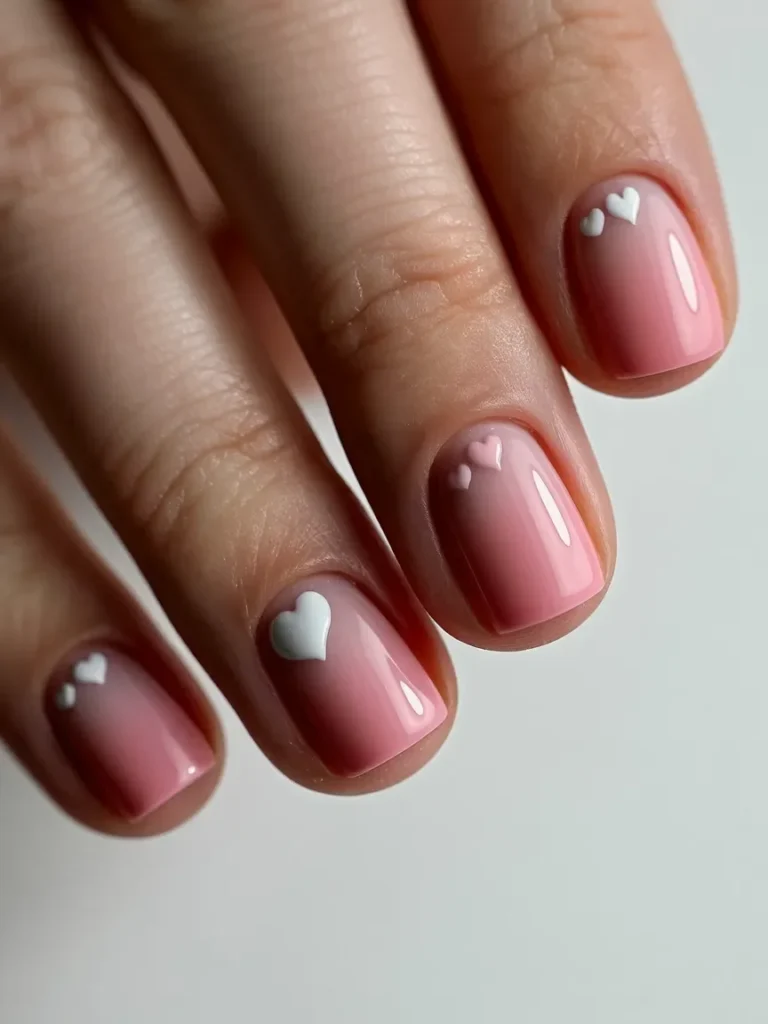 The delicate gradient from light to darker pink creates a smooth, elegant effect, making these nails perfect for anyone who loves subtle, sweet designs. Whether you’re celebrating Valentine’s Day or just adding a little love to your nails, this design strikes the right balance of charm and simplicity.