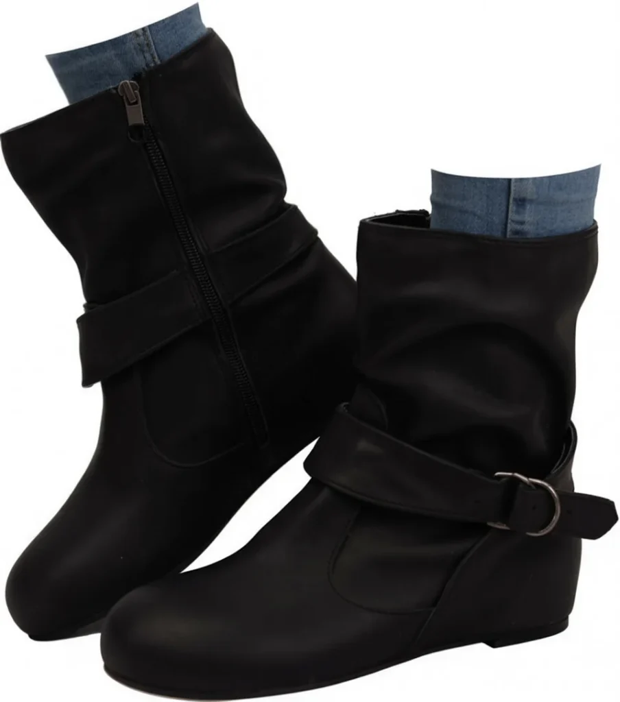 These black ankle boots bring a timeless touch to any winter wardrobe. Designed with a smooth matte finish and subtle buckle detail, they strike the right balance between comfort and sophistication.