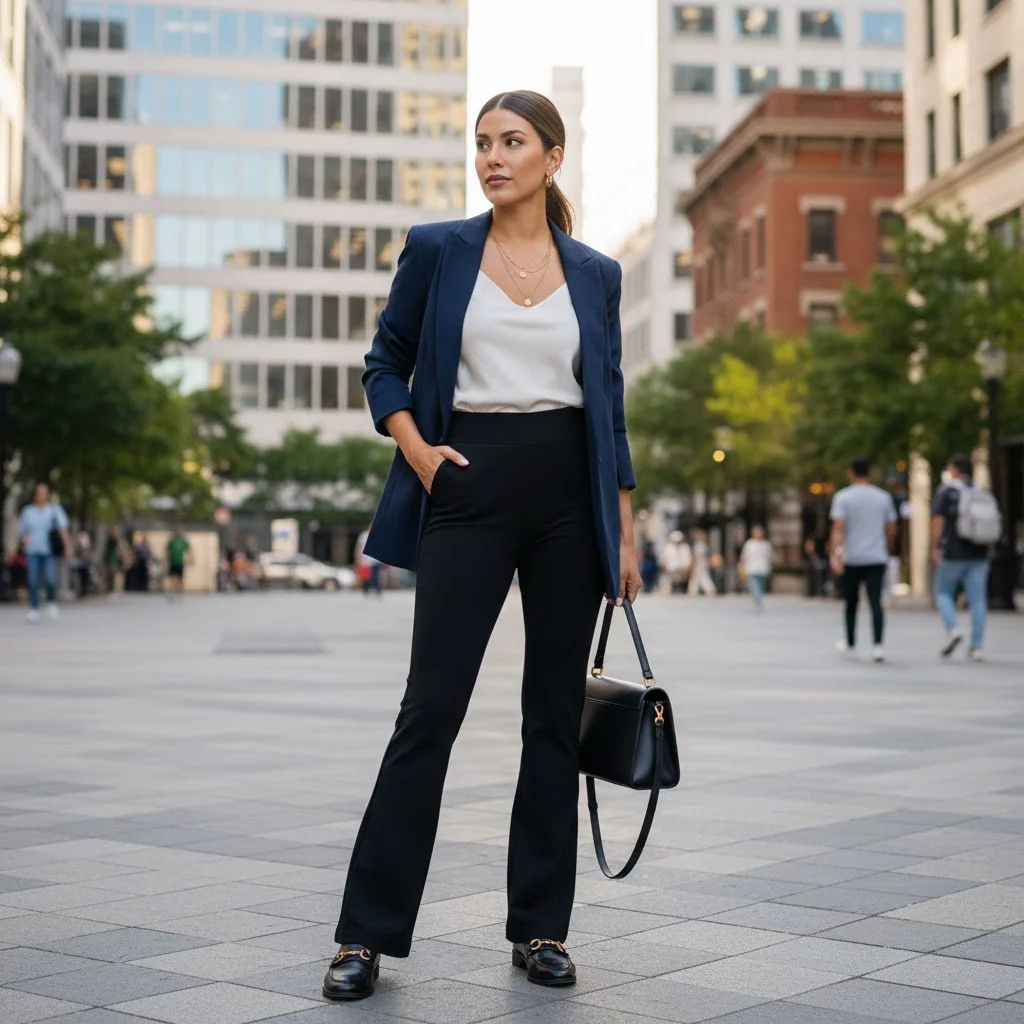 Who says you can’t wear yoga pants to the office or a professional setting? Pairing high-waisted yoga pants with a blazer is a fashion-forward way to incorporate athleisure into your workwear wardrobe. This outfit is stylish, comfortable, and perfect for days when you need to look sharp without sacrificing comfort.