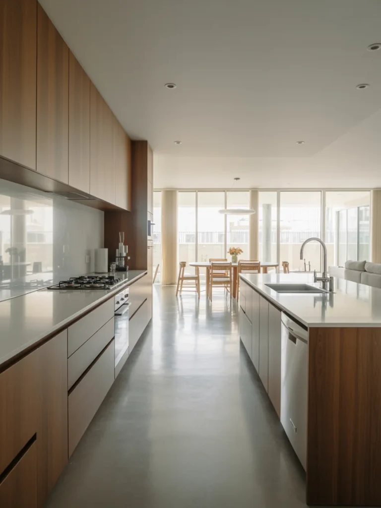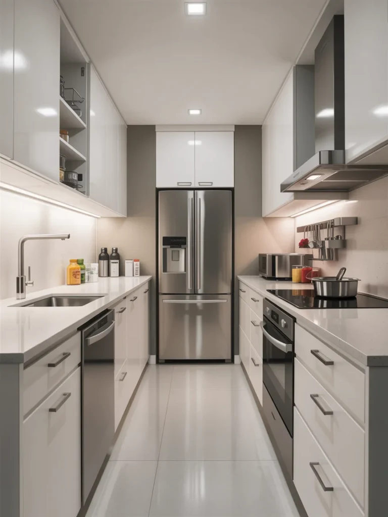 A galley kitchen is one of the most efficient layouts for small spaces. With two parallel counters and a central aisle, it maximizes workspace and minimizes clutter. The galley style works perfectly in long, narrow kitchens and small apartments.