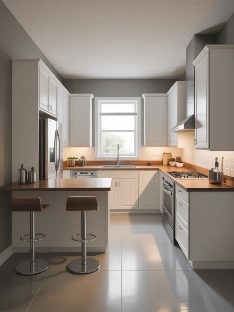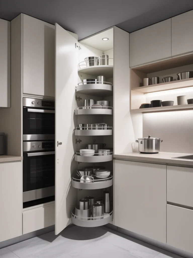 Utilizing corners for storage is essential in small kitchens. Corner cabinets, pull-out pantries, and rotating shelves help maximize every inch. This layout offers hidden storage solutions that keep your kitchen neat and organized.