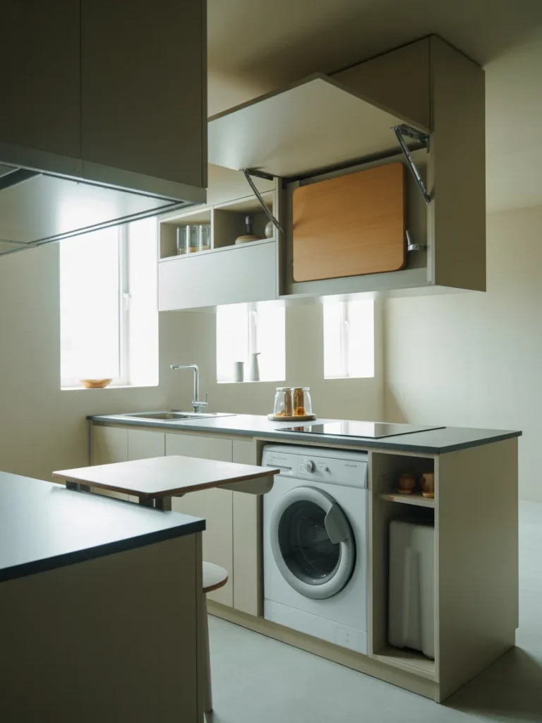 For a modern kitchen in a small space, dual-functionality is a must. Items like a combined washer/dryer, fold-down cutting boards, or multi-use countertops can help save space while providing extra functionality in the kitchen.