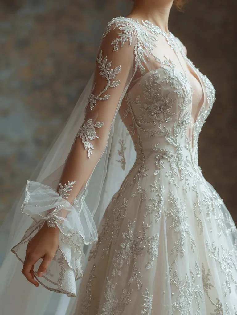 From long illusion sleeves to chic puff styles, these designs prove that sleeves can be just as statement-making as the dress itself.
