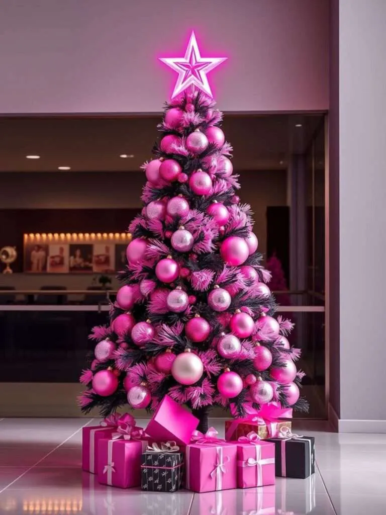 Bring the energy of celebration into your space with a hot pink Christmas tree. Combine bold shades of fuchsia with electric blue, gold, or purple ornaments for a striking contrast.