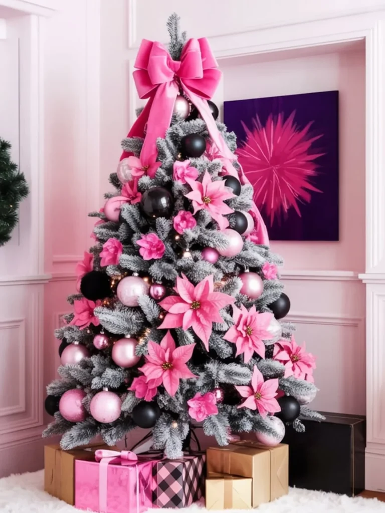 For a truly glamorous finish, pair pink with silver accents. Use glittering silver ornaments, tinsel garlands, and mirrored baubles to amplify your tree’s sparkle.